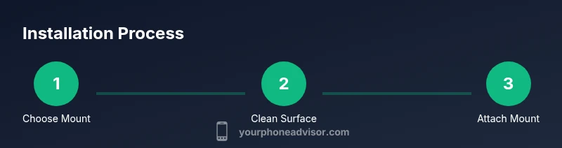Think of the installation in four levels: mounting base, cradle attachment, device insertion, and orientation. Start with the base—whether suction, pad, or vent clip—and secure it firmly. Attach the cradle to the base, then place the phone and adjust the grip. Rotate the mount to ensure the screen faces you clearly and test one-handed reach. This overview aligns with the detailed steps in the STEP-BY-STEP block and provides a mental map for the hands-on process. If you’re unsure about attachment strength, don’t rush; recheck the grip by applying light pressure and a gentle twist. A methodical approach reduces the risk of sudden detachment when you hit bumps.