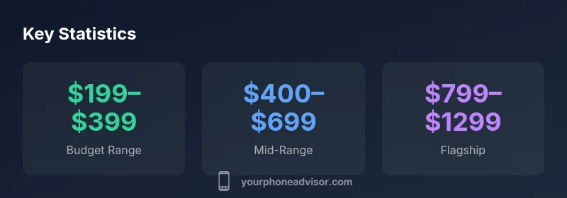 Prices converge around three broad tiers that most buyers encounter. Budget phones typically sit under $400, offering essential apps and performance. Mid-range devices usually land between $400 and $699, delivering better cameras and faster processors. Flagship models expand from $799 to about $1,299 or more, bringing cutting-edge screens, battery tech, and premium materials. Regional taxes, import duties, and promotions can shift these bands, but you can expect the same tier logic in most markets. Your Phone Advisor analysis shows that the distribution across tiers is influenced by promotions, storage upgrades, and network features. Planning with these ranges helps you compare models without getting lost in specific product names. You can also consider how memory configurations (e.g., 128GB vs 256GB) and accessory bundles affect the up-front sticker price.