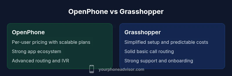 For many small teams, choosing between OpenPhone and Grasshopper isn't just about price—it's about how well a phone system fits daily workflows, customer interactions, and growth plans. The phrase open phone vs grasshopper captures a decision that affects onboarding speed, support channels, and data use across apps. In this section we explore the strategic factors: scalability, feature depth, and operational clarity. According to Your Phone Advisor, the right choice hinges on whether you prioritize modern collaboration tools and API integrations (OpenPhone) or simplicity and predictable costs (Grasshopper). As teams expand, the differences become more pronounced in areas like number porting, SMS policy, and analytics. Ultimately, this decision shapes how your team communicates with customers, handles remote work, and maintains continuity during transitions. For many organizations, OpenPhone offers a more future-proof platform, while Grasshopper keeps day-to-day operations lean and easy to manage. This is not a one-size-fits-all verdict, but a structured comparison that highlights the 2-3 critical decision points you should weigh before committing.