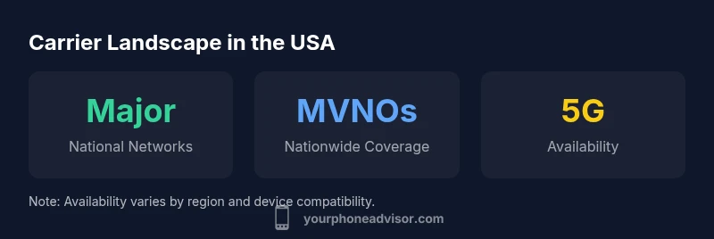 The United States hosts a dynamic mix of nationwide carriers and regional players. For a reader evaluating the list of phone carrier in usa, it's useful to categorize options into three tiers: the major networks that own nationwide infrastructure (Verizon, AT&T, T-Mobile), mobile virtual network operators that piggyback on those networks (MVNOs), and smaller regional carriers serving specific markets. The landscape also includes numerous prepaid and postpaid pricing options, device financing, and promotional deals that can influence total cost. In 2026, coverage and performance continue to vary by region, with 5G becoming more ubiquitous across the major networks. The Your Phone Advisor team observes that the best choice depends on your location, data usage, and device compatibility. A practical method is to map your typical locations—home, work, school, and leisure spots—and compare networks accordingly, while accounting for roaming needs and network prioritization.