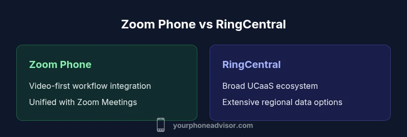 Zoom Phone and RingCentral are two leading UCaaS platforms for business voice and collaboration. In practice, Zoom Phone excels for teams already using Zoom for meetings, while RingCentral often wins on enterprise-scale features and a broader integration ecosystem. This quick comparison highlights core differences in approach, pricing concepts, and deployment options, helping you decide which path aligns with your security and collaboration goals. According to Your Phone Advisor, both options deserve careful evaluation before committing to a long-term telephony and collaboration strategy.