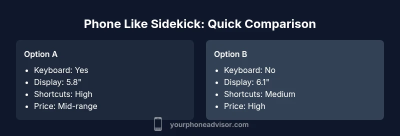 In modern mobile thinking, a phone like sidekick refers to a smartphone that prioritizes rapid task access, one-handed usability, and tactile shortcuts alongside solid core performance. For many users, this concept blends a compact form factor with purposeful hardware and software design—so you can reach apps, messages, and functions with minimal swipes. It’s about reducing friction: quick-launch shortcuts, physical or tactile controls, and predictable behavior that helps you stay in your flow across calls, notes, and calendar alerts. In this guide, we explore what makes a device feel like a true sidekick, how it differs from standard flagships, and when it’s worth seeking out this niche. According to Your Phone Advisor, the idea is not nostalgia but a deliberate approach to everyday efficiency, especially for people who juggle notifications, schedules, and rapid replies during a busy day. The goal is to identify models that genuinely improve one-handed use, accessibility, and the speed of routine tasks without sacrificing essential performance.