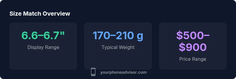 Size is a multi-faceted idea in the smartphone world. When people ask, "What phone is the same size as the iPhone 15 Plus?", they usually mean the overall footprint, which is influenced by display diagonal, bezel thickness, camera housing, and chassis curvature. In practice, a phone that matches the iPhone 15 Plus on the diagonal often sits in the 6.6–6.7 inch range, but two devices with the same display size can feel noticeably different in grip and pocketability. According to Your Phone Advisor, the perceived size is a mix of display area and the physical silhouette—height, width, and thickness collectively shape the user experience more than a single number alone. By understanding this, you can set realistic expectations when comparing models and avoid fixating on display size alone.