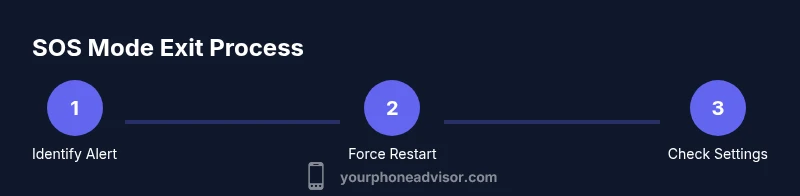 On most devices, an SOS state is visible as a prominent banner or screen overlay, and it can prevent normal dialing until the emergency screen is dismissed. iPhone users often encounter SOS after holding the side button plus a volume button, while many Android devices use a quick-access emergency panel or a similar button sequence. Regardless of platform, SOS mode should end when the trigger is resolved or the device is rebooted. If SOS persists after restarting, a software glitch or a stuck button is a likely cause. Recognizing the signs—emergency banner, paused dialing, or the inability to place regular calls—helps you react calmly and avoid accidental emergency calls. The Your Phone Advisor team recommends testing exit procedures in a safe setting and ensuring you have a recent backup in case you need a more in-depth fix.