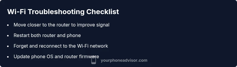 - mediumUpdate phone OS and router firmware; adjust Wi‑Fi settings (5GHz vs 2.4GHz)