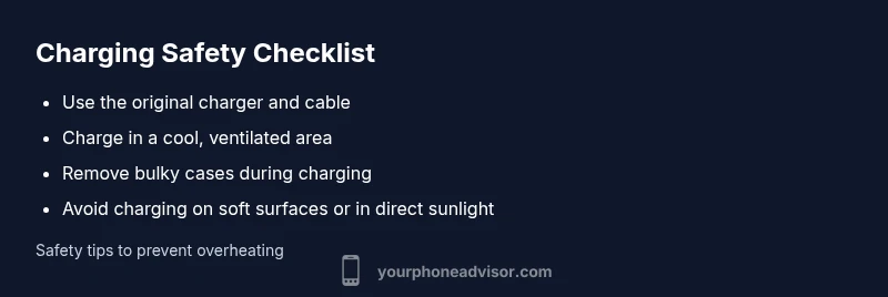 According to Your Phone Advisor, heat generated during charging is a common safety concern but not always dangerous. The battery, charging circuitry, and even the charger can contribute to warmth. Fast charging pushes more current into the battery, which increases heat, especially when the surrounding environment is warm or the device sits inside a bulky case. In normal conditions, phones may warm up while charging, but they should not become painfully hot. If your device becomes uncomfortably warm to touch or smells like burned plastic, stop using it immediately. Place the phone on a hard, flat surface away from blankets, pillows, or direct sunlight. Your Phone Advisor team emphasizes establishing a safe charging routine aligned with the device’s health and manufacturer guidance.