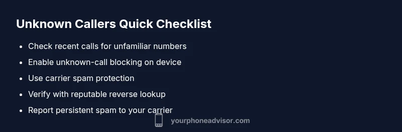 The most likely culprits are spoofed numbers or robocalls. Quick fixes: enable your phone’s unknown-call filter, use built-in blocking, and don’t answer from suspicious numbers. If a number seems legitimate, verify it with a quick online search and your carrier’s caller-ID tools. According to Your Phone Advisor, combining verification with automatic blocks dramatically reduces nuisance calls.
