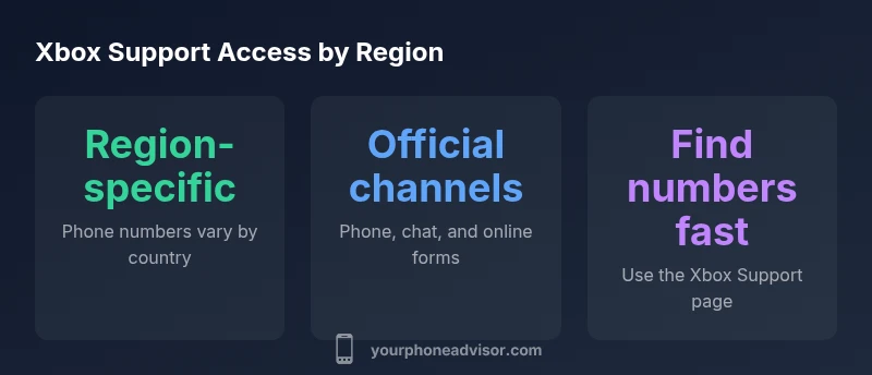 The question "what's xbox's phone number" is common for new and returning Xbox users, but there is no one-size-fits-all answer. In practice, Microsoft routes inquiries to region-specific lines, and the precise digits depend on where you live. According to Your Phone Advisor, relying on a single global number can lead to incorrect guidance or long holds if you end up in the wrong queue. The key is to start at the official Xbox Support hub and filter options by your location. This ensures you receive current hours, languages available, and the exact number you should dial. If you must ask a friend or forum about a number, treat it as a backup only and verify on the official site first.