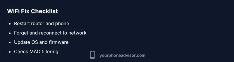 Before diving into deeper steps, run these quick checks. Make sure the router is powered and the WiFi network is enabled. Confirm you’re connecting to the correct SSID and re-enter the password if necessary. Check for a simple mistake like uppercase letters or trailing spaces. Also verify the date, time, and time zone on your phone; incorrect time settings can cause security certificates to fail during the handshake. If other devices connect fine, the problem is likely with the phone; if they don’t, the router or ISP connection may be the issue.